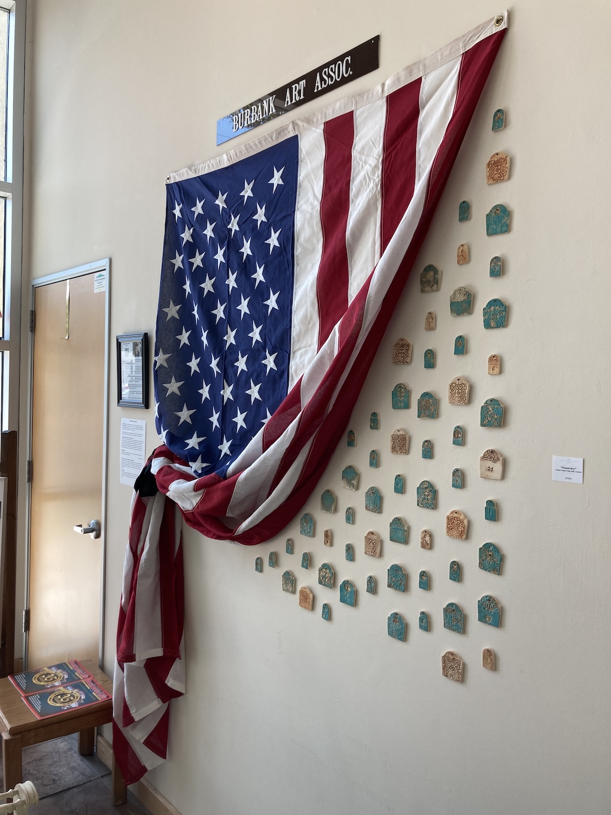 Installation American Flag and Ceramic headstones NFS This was part of my solo show “Freedom” and represents how America is being killed off one thing…